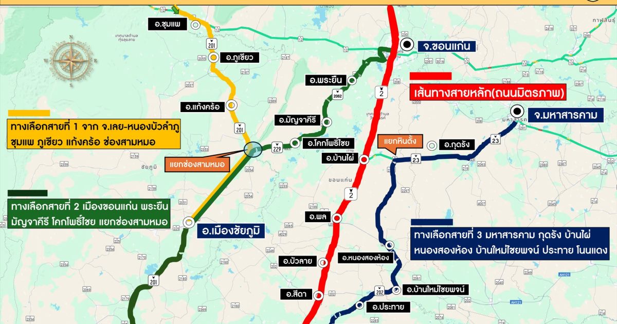 ประชาสัมพันธ์เส้นทางเลี่ยงถนนมิตรภาพช่วงเทศกาลปีใหม่ 2568 ของจังหวัดขอนแก่น