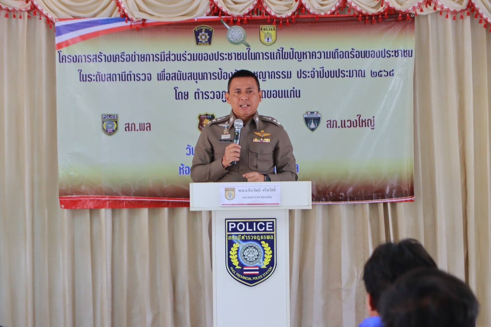 ได้เดินทางมาเป็นประธานพิธีเปิดอบรมโครงการสร้างเครือข่ายการมีส่วนร่วมของประชาชน ในการแก้ไขปัญหาความเดือดร้อนของประชาชน ระดับสถานีตำรวจ เพื่อสนับสนุนการป้องกันอาชญากรรม ประจำปีงบประมาณ 2568 ณ ห้องประชุมอรัญยะปาล สภ.พล มีผู้เข้ารับการอบรมเป็นผู้นำชุมชนและประชาชนในพื้นที่ อำเภอพล,อำเภอแวงน้อย และอำเภอแวงใหญ่ รวมจำนวน 150 คน ในการนี้มี พ.ต.อ.พีระฉัตร สาขา