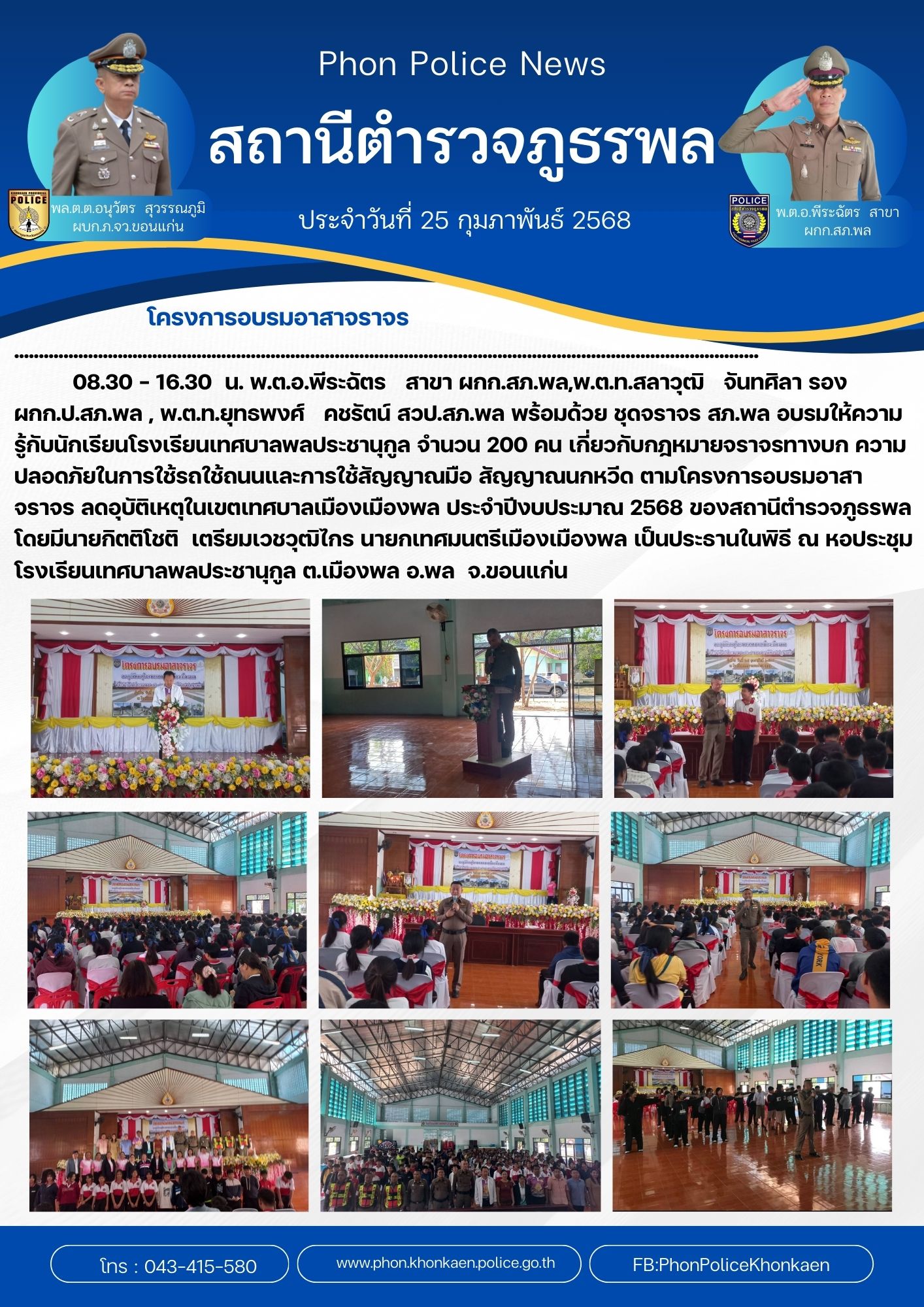 โครงการอบรมอาสาจราจร 25 กุมภาพันธ์ 2568 โดย admin / ข่าวภารกิจผู้บังคับบัญชา FacebookFacebookXXLINELine