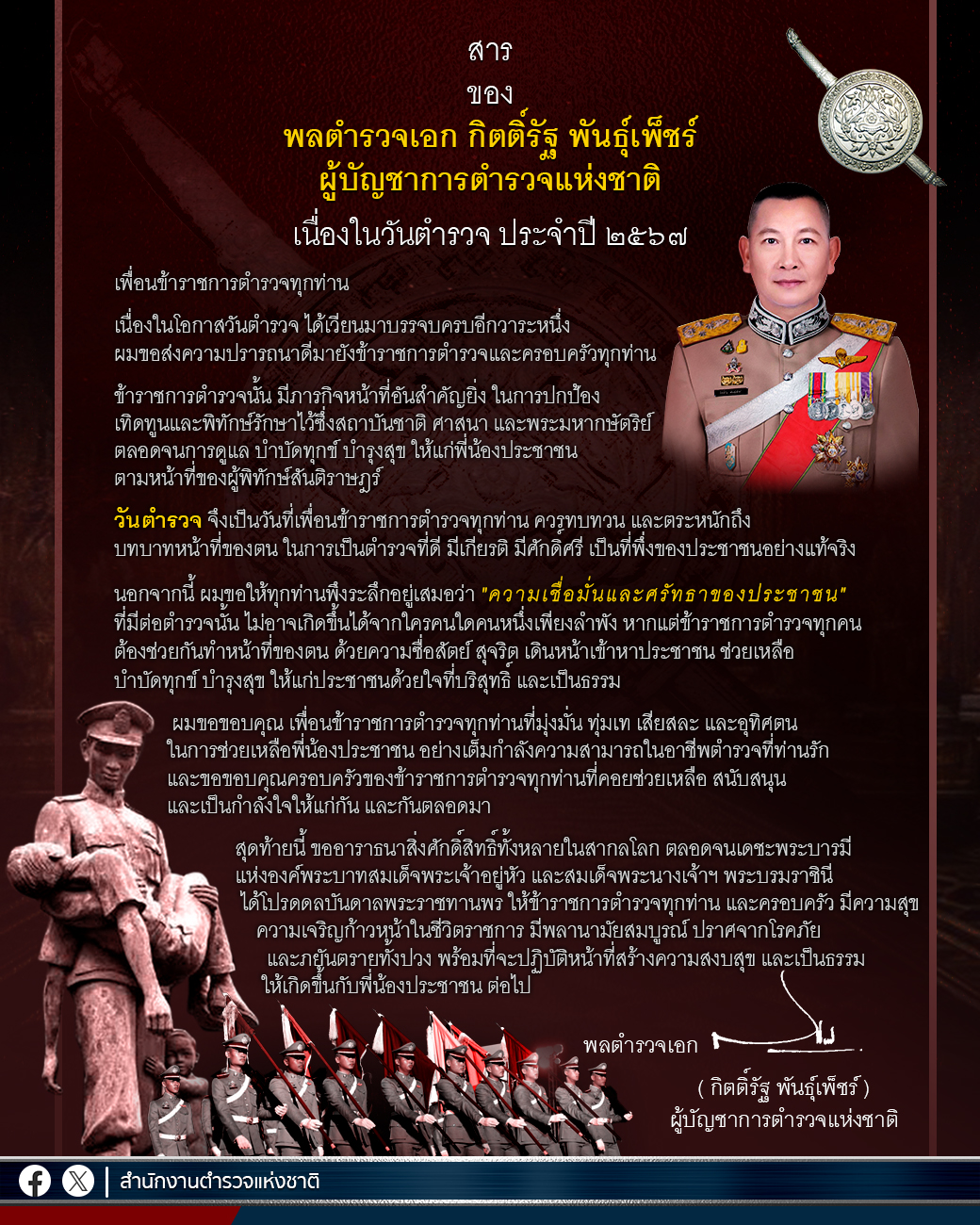 “สาร” ของ พลตำรวจเอก กิตติ์รัฐ พันธุ์เพ็ชร์ ผู้บัญชาการตำรวจแห่งชาติ เนื่องในวันตำรวจประ