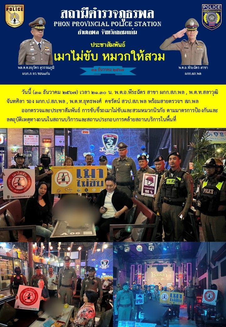 สภ.พล“เทศกาลปีใหม่ ๒๕๖๘” ———————————— วันนี้ (๓๑ ธ.ค.๒๕๖๗) เวลา ๑๗.๓๐ น. พ.ต.อ.ชินวัฒน์ ศรีสวัสดิ์ ร