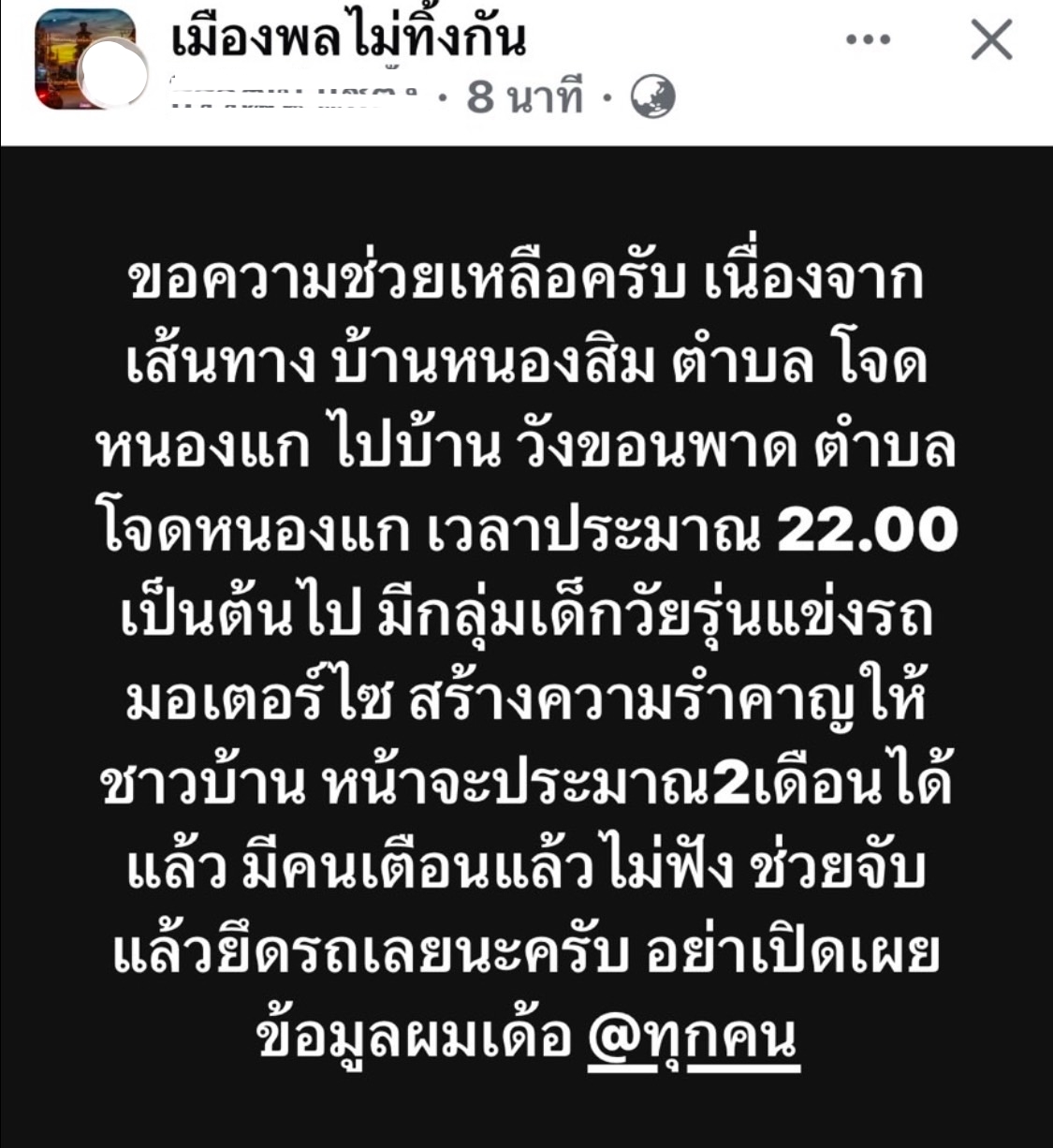 #ไม่ปล่อยผ่าน ตามที่ปรากฎโพสต์ในกลุ่มเฟสบุ๊ค “เมืองพล ไม่ทิ้งกัน” แจ้งข้อความความเดือดร้
