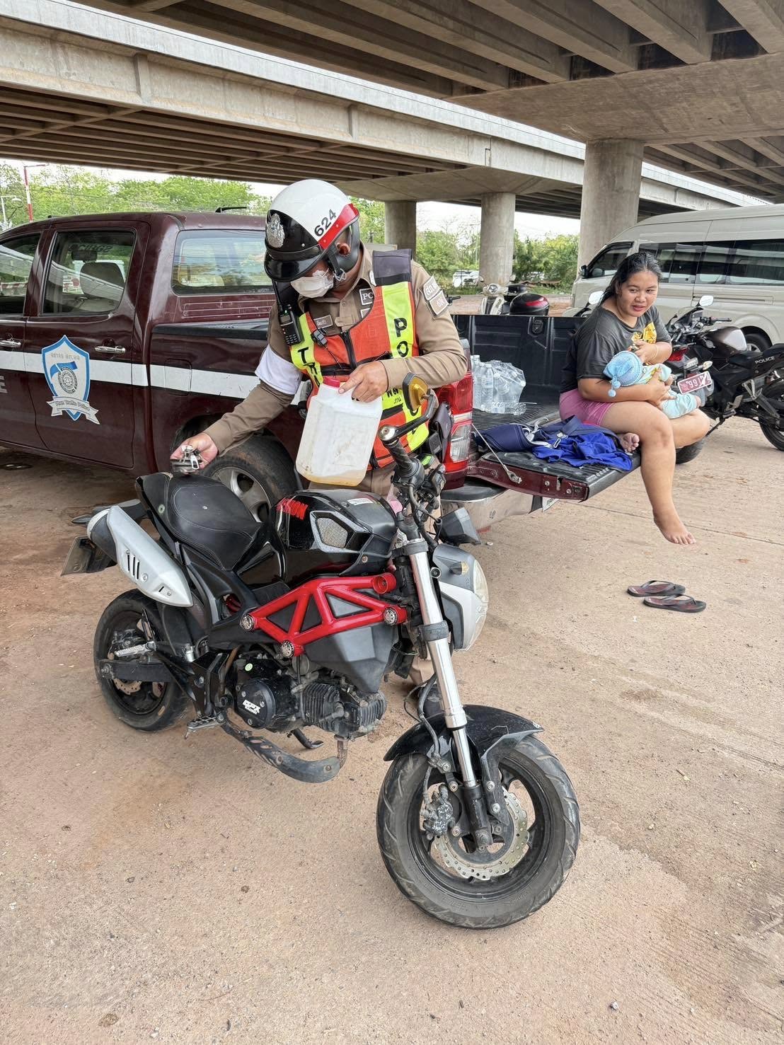 ช่วยเหลือประชาชนรถน้ำมันหมด —————————————- 624,616 ประชาชน รถจักรยานยนต์น้ำมันหมด ดำเนินไปซื้อน้ำมัน